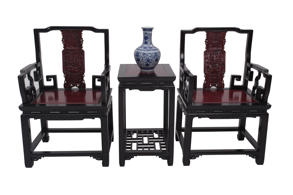紅酸枝+紫光檀 椅子:62X50X102 茶幾:42X48X72