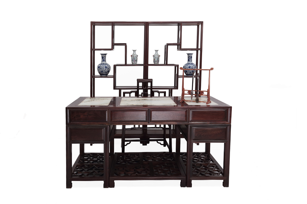 大紅酸枝 博古架:83X30X186 椅子:68X56X103 寫字臺:168X80X84.5
