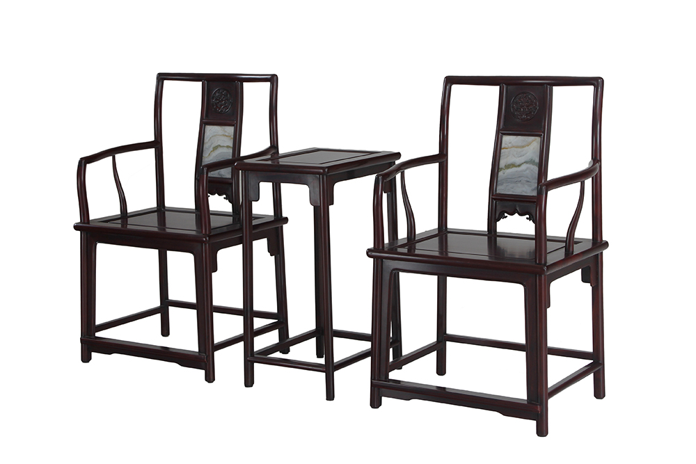 SUZ023 嵌云石官帽椅3件套
