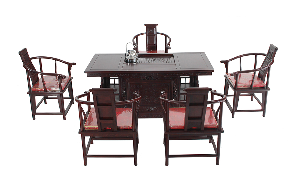 DY076 戰(zhàn)國茶臺6件套 非洲酸枝158X80X72 59X48X91