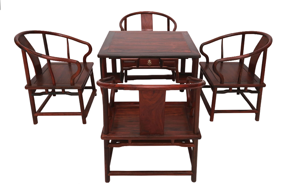 大紅酸枝 方桌: 78X78X62 椅子:60X46X70