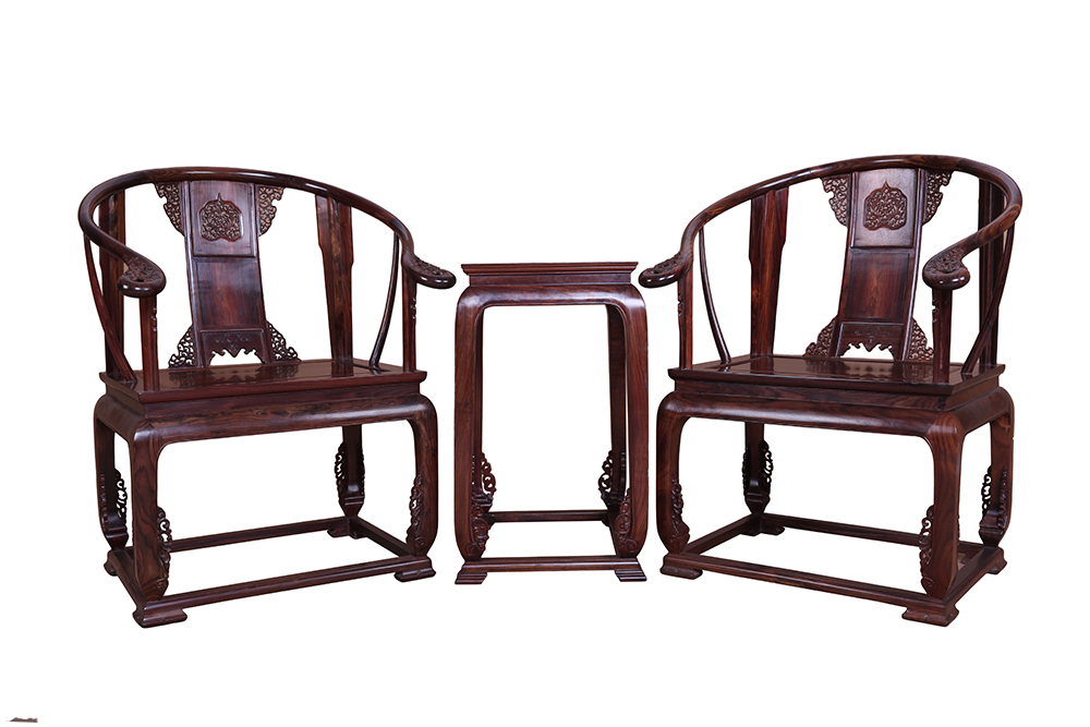 大紅酸枝 皇宮椅:62X50X96 茶幾:35X47.5X70