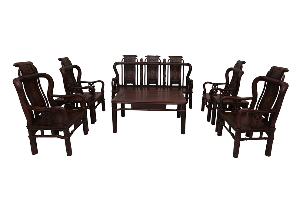 ZAK039 ZAK040 YDS024 YDS025 沙發(fā)8件套 大紅酸枝 大平幾:115X80X53 茶幾:50X40X52 單人椅:68X52X112 三人椅:177X52X112