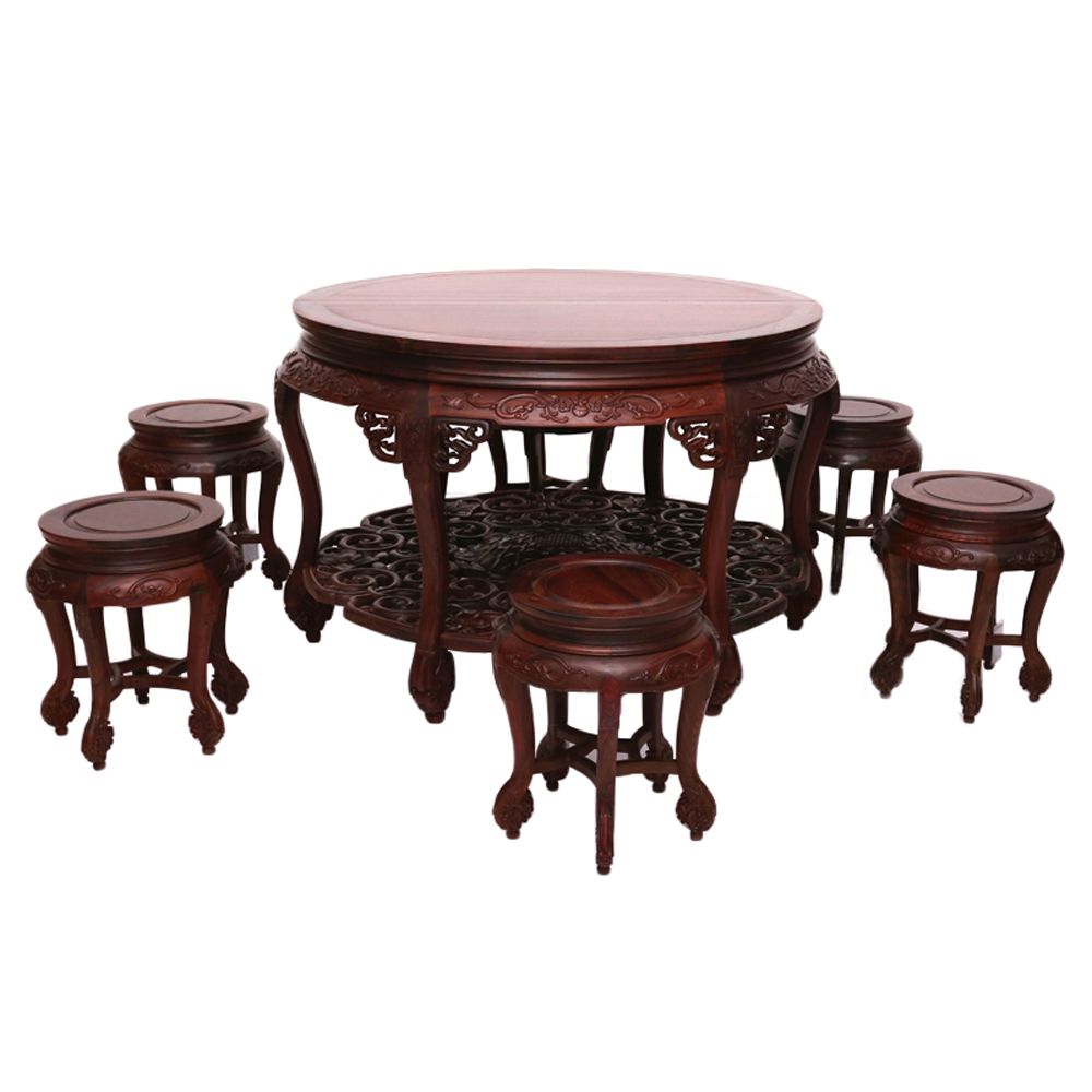 大紅酸枝 桌子:124X124X84 椅:34X34X49